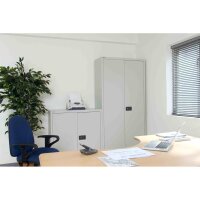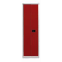 Bisley Flügeltürenschrank Universal, 4 Fachböden, 5 OH, B 600 mm, Farbe Korpus lichtgrau, Türen kardinalrot